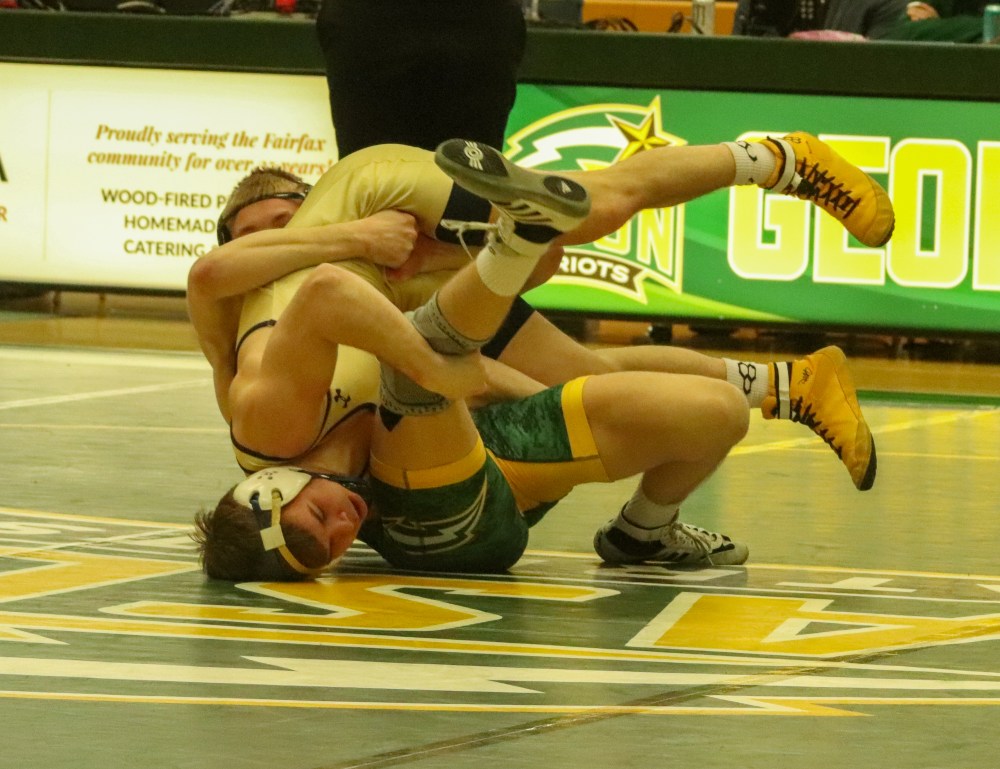 In the final match, reshhirt sophomore Shawn Nonaka recorded his first pin as a Patriot, getting the first period fall to close out the dual!
