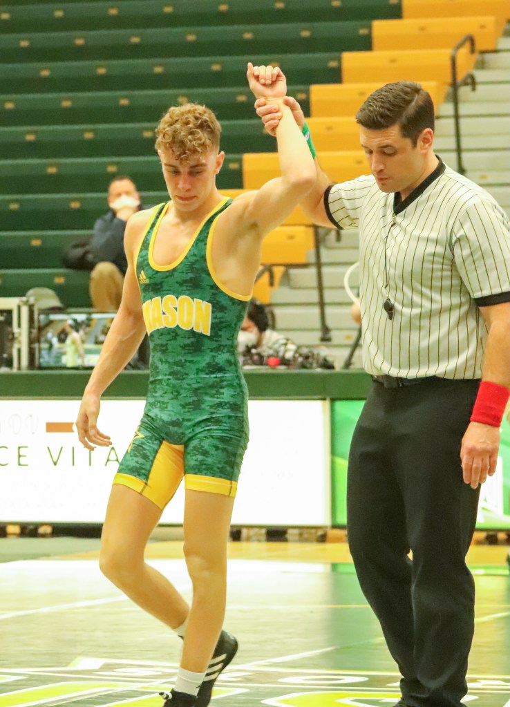 Unfortunately, Mason’s next two grapplers, Tyler Kocak and Logan Messer, suffered losses, but were battling all the way until the final whistle.